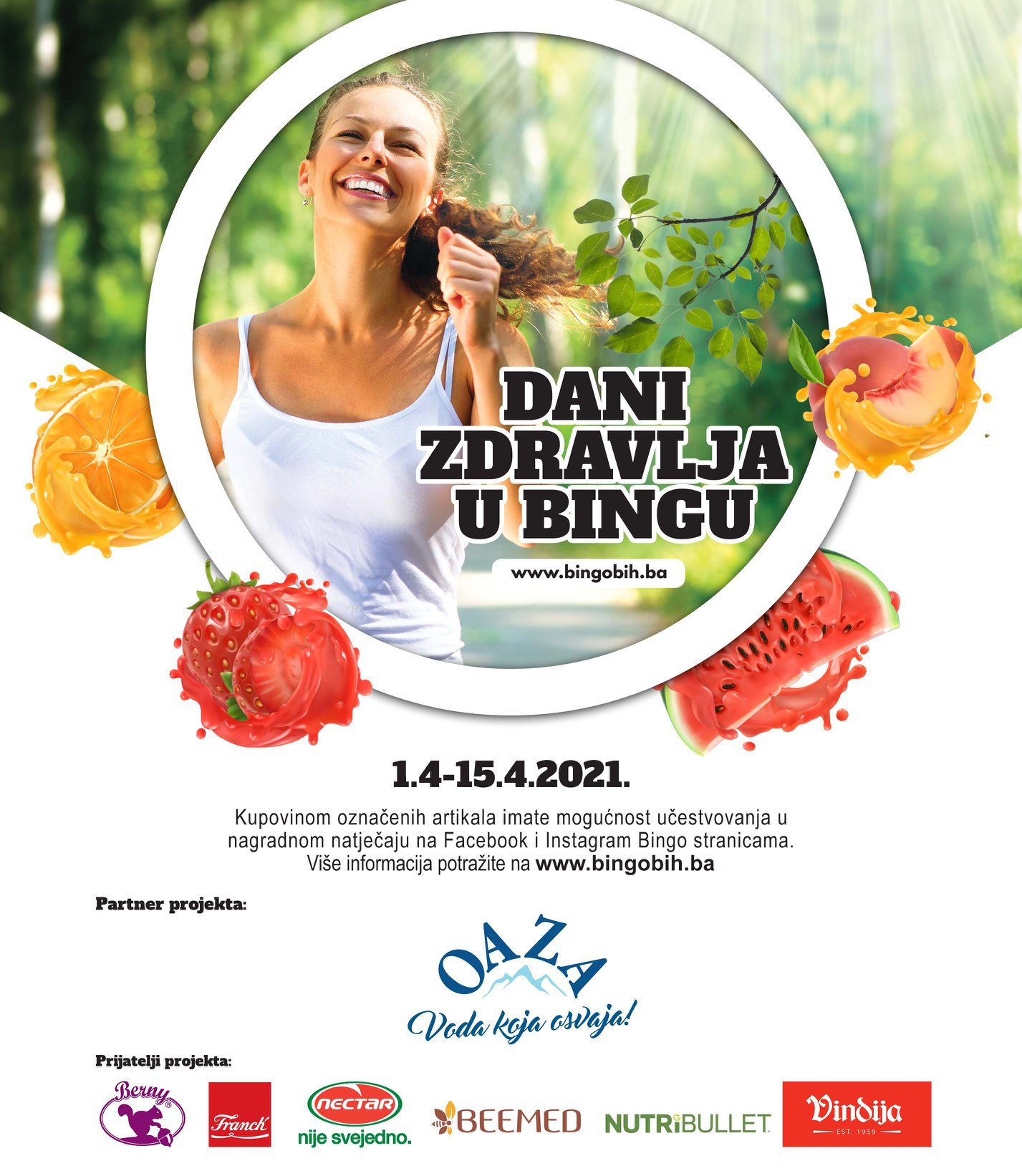 Već četvrtu godinu zaredom kompanija Bingo u saradnji s partnerima organizuje aktivnosti povodom Svjetskog dana zdravlja koji se obilježava 7. aprila. Ove godine partner projekta je voda „Oaza“, a prijatelji projekta su Berny, Beemed, Franck, Vindija, Nektar i Nutribullet.