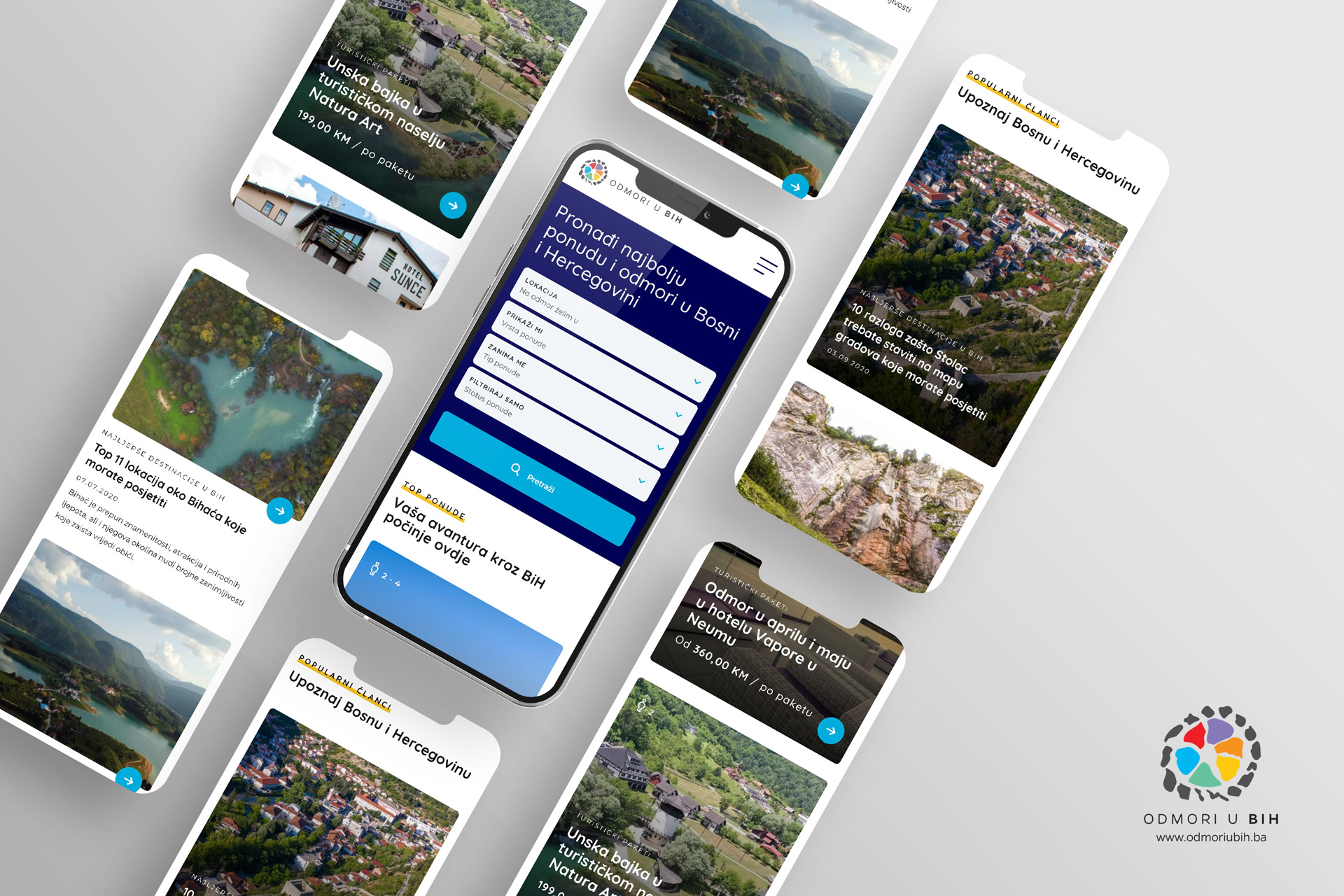 Platforma nudi iskustva u svim krajevima BiH, ne samo onim najpopularnijim i najpoznatijim destinacijama, pa na Odmoriubih.ba trenutno možete pronaći odlične pakete i destinacije kao što su Livno, Bosanski Petrovac, Nacionalni park Sutjeska, Blagaj, Tešanj, Jajce, Bijeljinu, Ljubuški, Drvar, Ravno, Tarčin, Vitez, Međugorje, Stolac i mnoge druge.