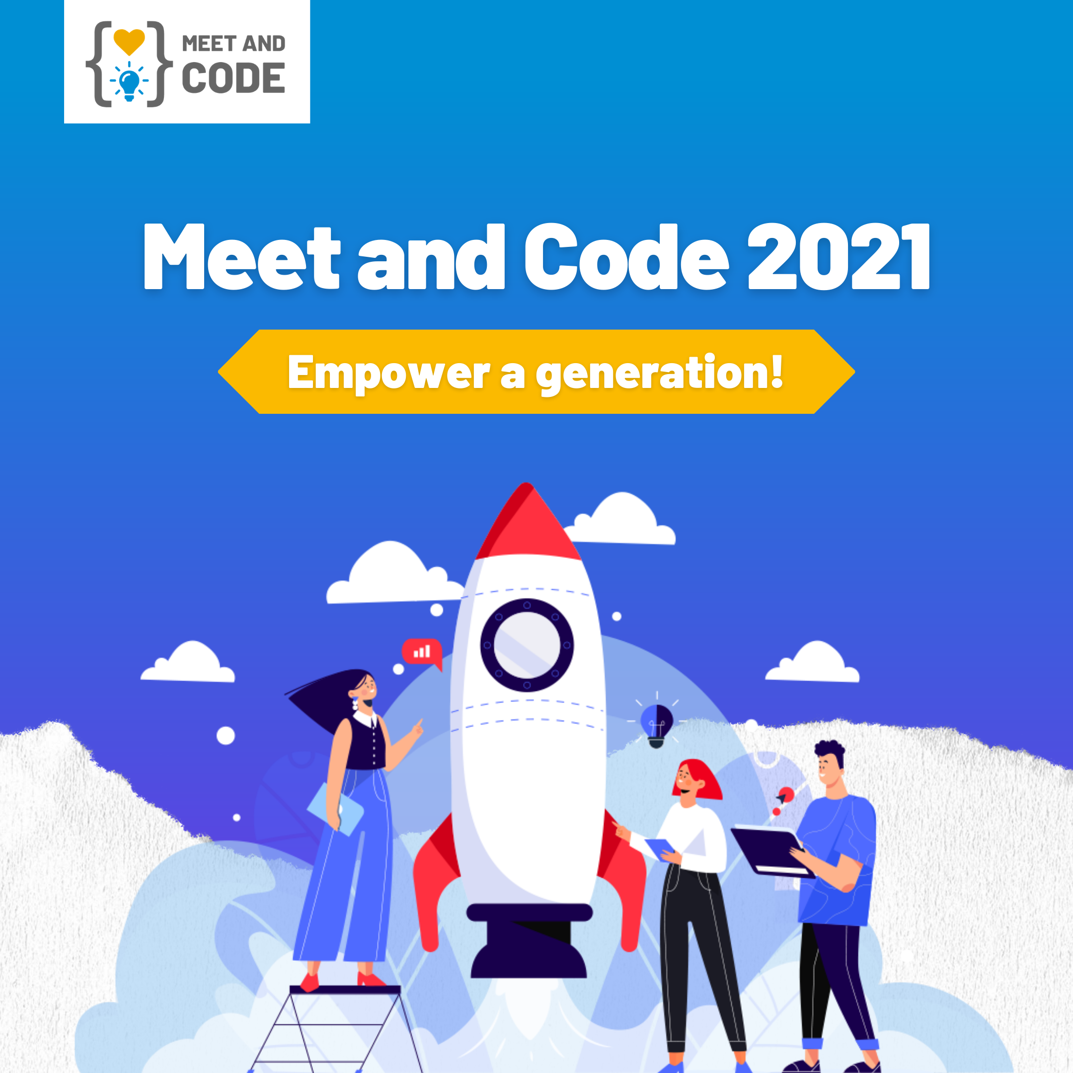 Meet and Code ima za cilj da upozna djecu i mlade ljude uzrasta od 8 do 24 godina sa svijetom tehnologije i programiranja. Događaji su dizajnirani tako da pokažu mladim ljudima koliko programiranje može biti zabavno i na koji način može pomoći u ostvarivanju i primjeni ideja. Oni trebaju naučiti na koji način tehnologija funkcioniše i na koji način IT utiče na naše svakodnevne živote. Istraživanjem širokog spektra tehnologija, digitalnih tema i kreativnog programiranja, oni će biti ohrabreni da još više razvijaju svoje digitalne vještine koje su im potrebne u današnjem svijetu.