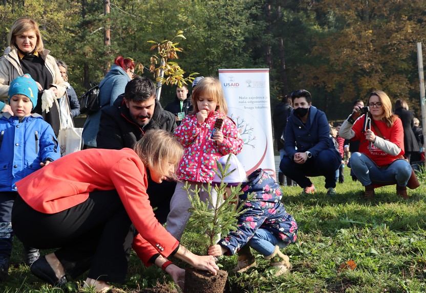 „Drago mi je što sam se danas ovdje u Tuzli pridružila partnerima iz Fondacije Tuzlanske zajednice i novoj generaciji mladih aktivista. Ovo je samo jedna od mnogih lokalnih inicijativa podržanih kroz naš program Snaga lokalnog, u kojem su građani ti koji mijenjaju svoje zajednice. Prosperitet počinje lokalnim razvojem, pri čemu lokalni akteri preuzimaju vodstvo u rješavanju razvojnih izazova. Drago nam je što se ova inicijativa bavi problemima okoliša i klimatskih promjena. Američka vlada smatra da su zaštita okoliša i svijest i učešće građana u takvim inicijativama izuzetno važni. Dugoročna promjena moguća je samo ako su svi uključeni u društvene procese, a posebno djeca. Bilo mi je zadovoljstvo pridružiti se tuzlanskoj djeci u sadnji 50 sadnica četinara. Nadam se da će se brinuti za novu šumu dok odrastaju zajedno sa svojim drvećem.”, rekla je tom prilikom Courtnex Chubb, direktorica misije USAID u BiH, koja se pridružila djeci u sadnii stabala.