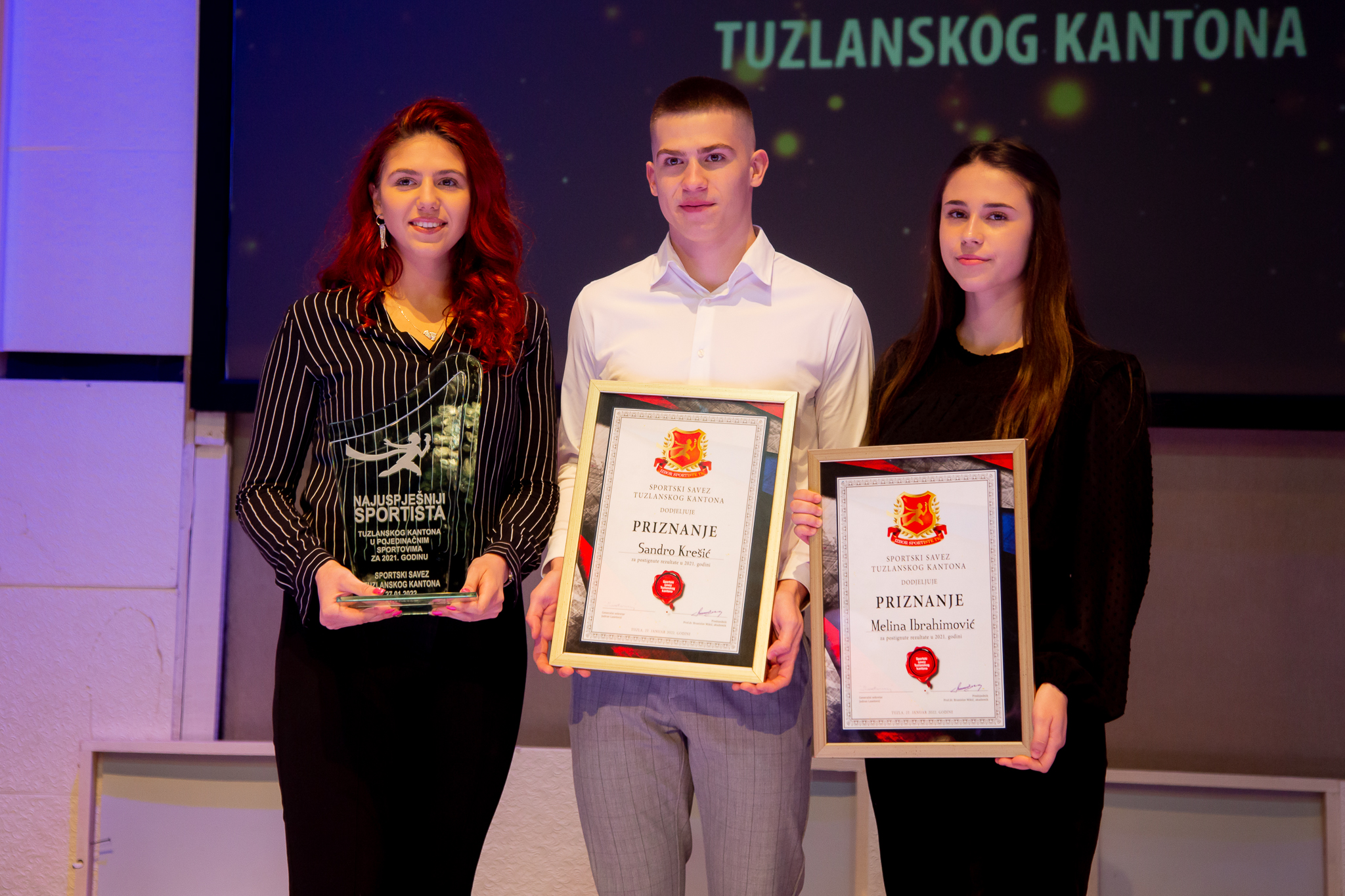 Stefani Krešić i Nikola Drobnjak u konkurenciji pojedinačnih, te Alen Ovčina i Edina Selimović u konkurenciji ekipnih sportova, proglašeni su najboljim sportistima Tuzlanskog kantona u 2021. godini, na sinoć održanoj manifestaciji u Velikoj sali BKC-a.
