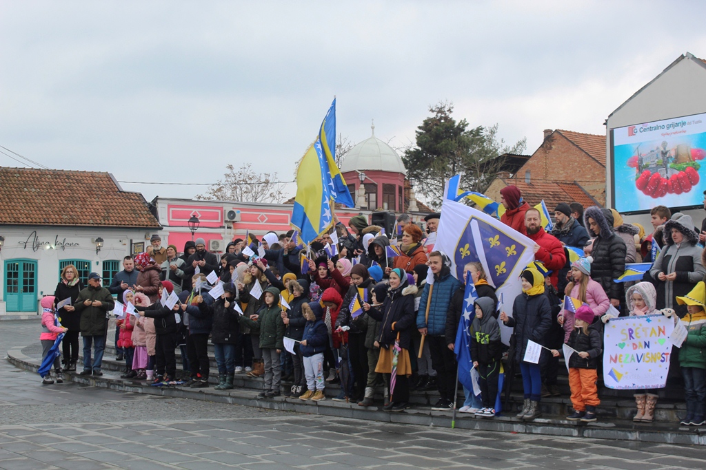 Program je nastavljen na Trgu slobode, gdje je prof. dr. Izet Šabotić, profesor na Odsjeku Historija na Filozofskom fakultetu u Tuzli, održao kraći historijski čas ističući značaj Bosne i Hercegovine kroz historiju, njenu opstojnost i borbu za nezavisnost koja je obnovljena prije 30 godina.