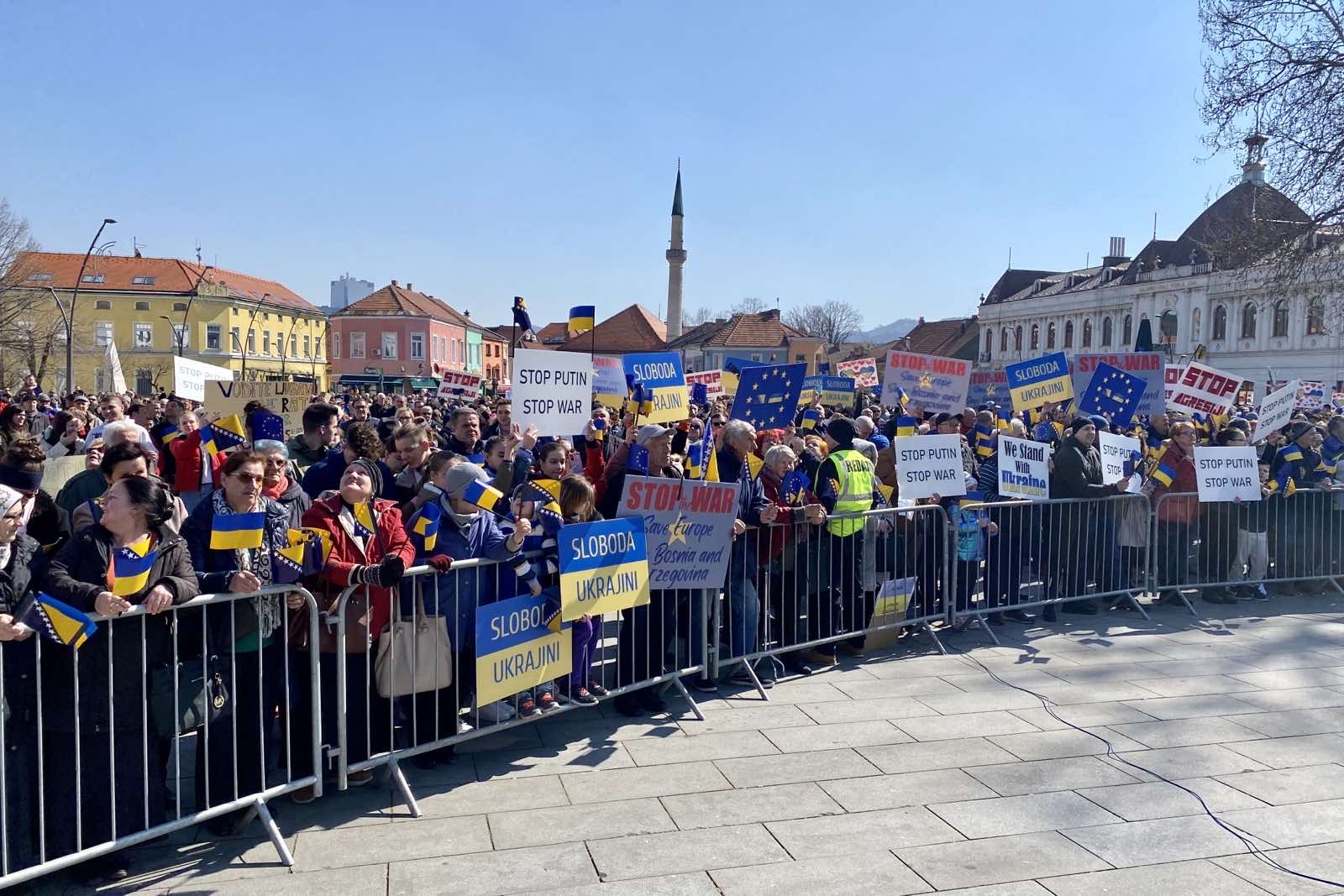 U organizaciji Grada Tuzla, Foruma građana Tuzla i Memorijalnog centra Srebrenica u subotu je na Trgu slobode u Tuzli održan skup podrške Ukrajini i miru u Evropi i Bosni i Hercegovini. Iz Tuzle su poslane poruke protiv rata, apel za mir, život i slobodu.