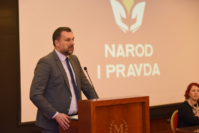 ˝Državne institucije su oslabljene, s jedne strane, kroz blokade dok su s druge strane oslabljene kroz njihovu zloupotrebu i pokušaj privatizacije državnog aparata od strane političkih stranaka i interesnih grupa. Korupcija i pravna nesigurnost postale su gotovo prihvatljive društvene pojave i politička praksa. U tim okolnostima jedan hrabar tim osnovao je Narod i Pravdu na novim osnovama političkog djelovanja, transparentnosti, moralu i političkoj etici te beskompromisnoj borbi protiv korupcije“, kazao je Hajdarević naglasivši da Narod i Pravda želi pozitivno utjecati na procese u BiH, da su pokazali spremnost za dijalog ali bez trgovine ključnim javnim dobrima i državnim interesima.
