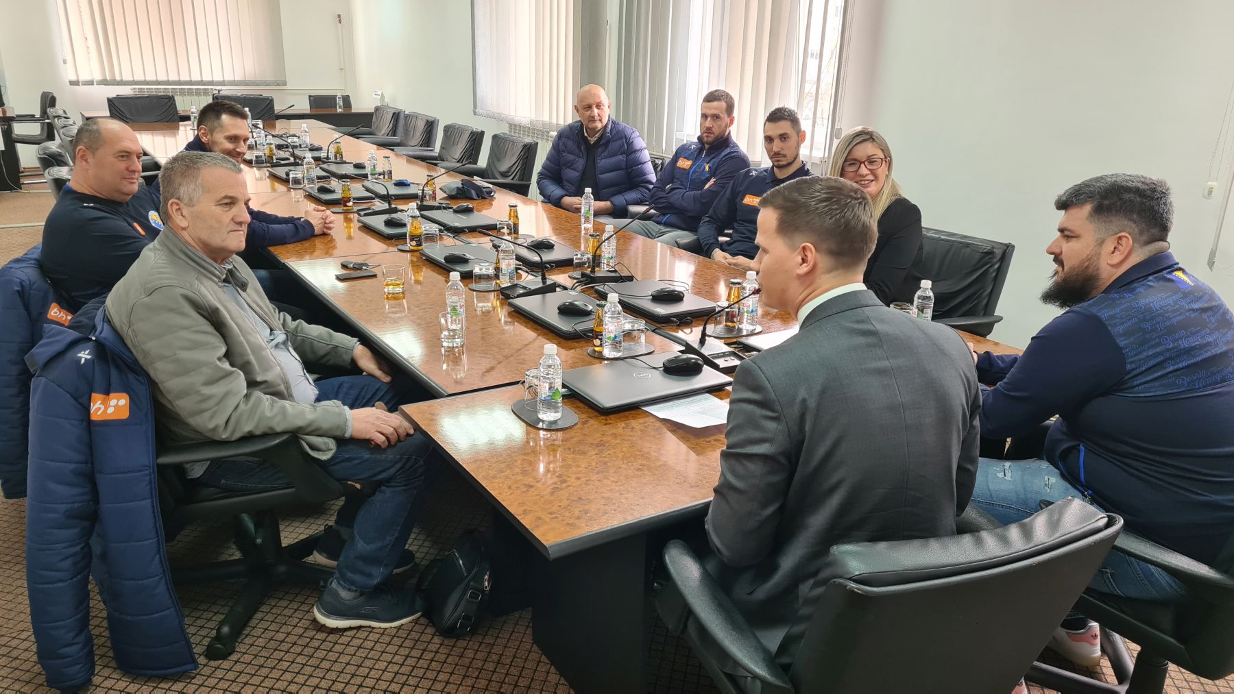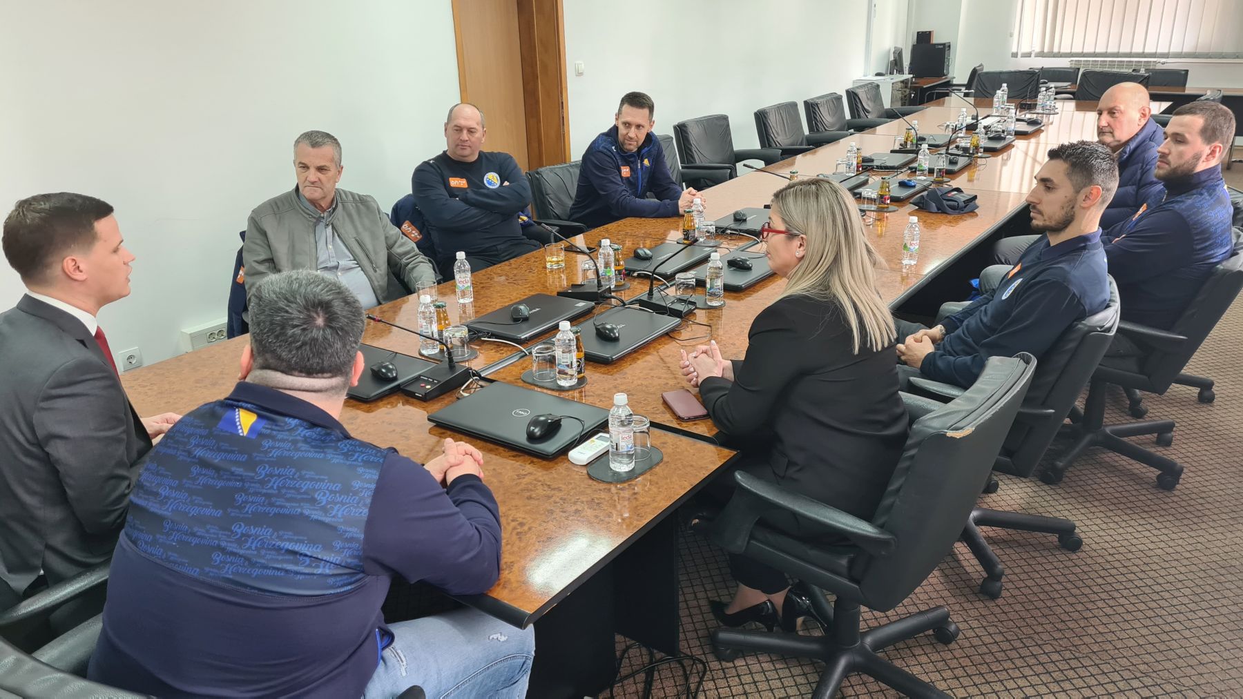 Uz premijera sastanku je prisustvovala i ministrica kulture, sporta i mladih Ivana Mijatović, dok su uz selektora Čolinu i člana UO Rađu, današnjem sastanku prisustvovali i predsjednik Rukometnog saveza TU Alija Hasić, kondicioni trener u reprezentaciji Muris Đug, trener golmana Mario Blažević, te igrači Alen Ovčina, Benjamin Burić.