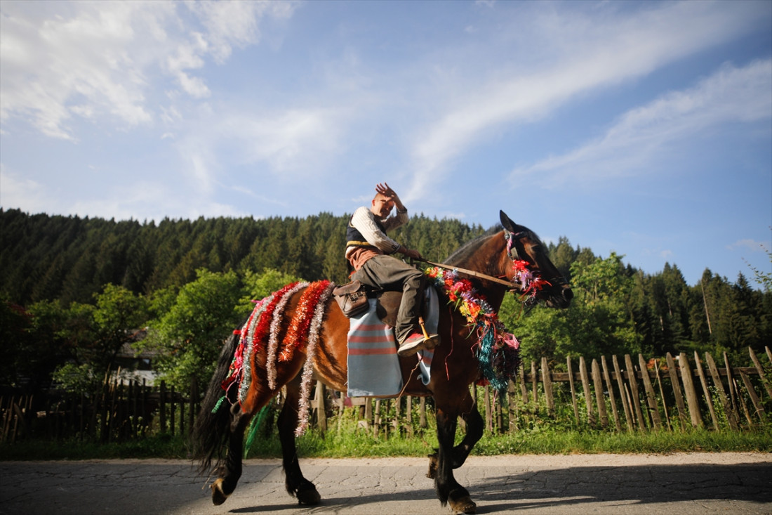 Konjanici odjeveni u tradicionalnu nošnju, učeći tekbire i ilahije, uz prve zrake sunca prošli su kroz malo mjesto Karaulu, dok su ih sa prozora kuća i avlija ispraćali i sretan put poželjeli lokalni mještani.