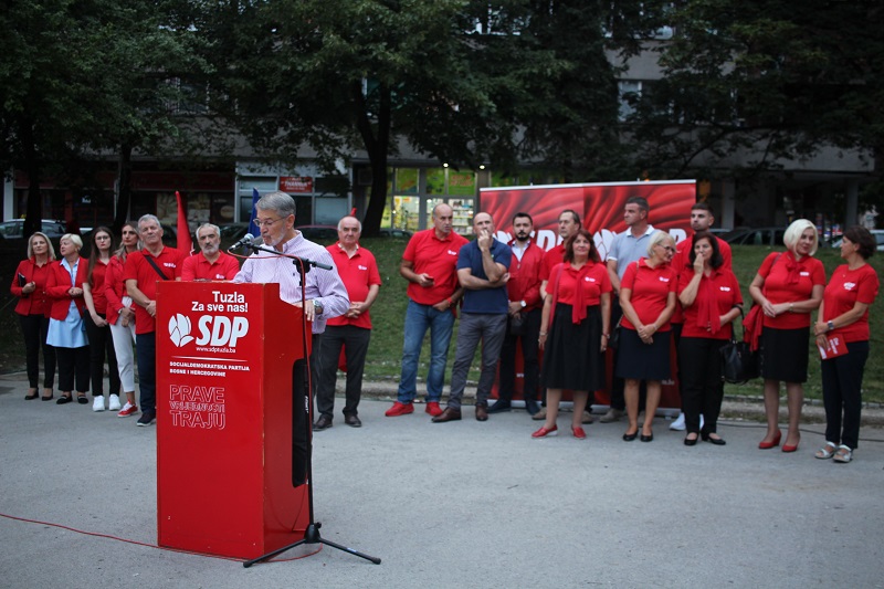 ˝Kada smo moj tim i ja obećali da ćemo ukinuti redukcije vode, da ćemo izgraditi Panonska jezera, da ćemo imati plažu u centru grada, da će Tuzla biti grad kulture i turizma, da ćemo imati najviše malih i srednjih preduzeća u Bosni i Hercegovini, neki nisu vjerovali. Danas vidimo da su bili u pravu oni koji su nam vjerovali. Preporodili smo Tuzlu. Vrijeme je da svi zajedno preporodimo Bosnu i Hercegovinu. Mnogi su mišljenja da bi bilo dobro tuzlanski primjer proširiti na cijelu BiH. Izbori su prilika da to uradimo, tj. pobjeda SDP-a BiH i pobjeda Denisa Bećirovića za člana Predsjedništva BiH. Za građane BiH drugoga puta nema, u to sam u potpunosti siguran˝, kazao je gradonačelnik Tuzle Jasmin Imamović, nosilac liste za Parlamentarnu skupštinu BiH i dodao: ˝Mi moramo promijeniti te vlade tako što ćemo što masovnije izaći na izbore i glasati za SDP. Država je velikoj krizi. Iz krize je ne mogu izvući oni koji su državu doveli u tu krizu. Moraju se desiti promjene i zaustaviti nazadovanje Bosne i Hercegovine. Glasajući za SDP BiH na svim nivoima i Denisa Bećirovića za člana Predsjedništva BiH vi glasate za promjene i spas Bosne i Hercegovine. Vrijeme je da Bosni i Hercegovini svane i da BiH oslobodi svoju unutarnju energiju˝.