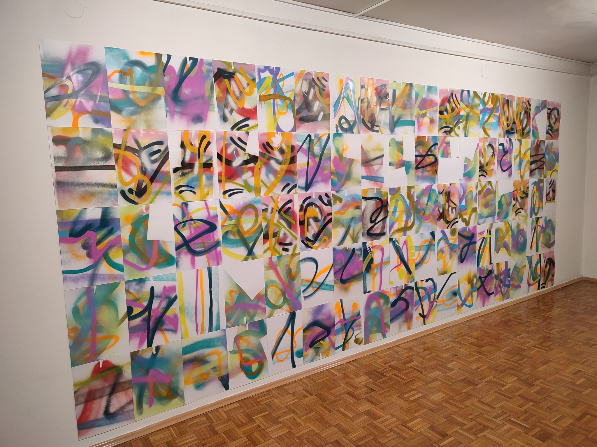 Svaka nastala slika je jedinstvena, budući da ju je radilo više ljudi, svako s po jednim potezom spreja, u seriji od po nekoliko slika. Nakon što su ispred sebe imali nizove jedinstvenih slika, umjetnici su ih u subotu preraspoređivali i uklapali u Ateljeu u nove koncepte.