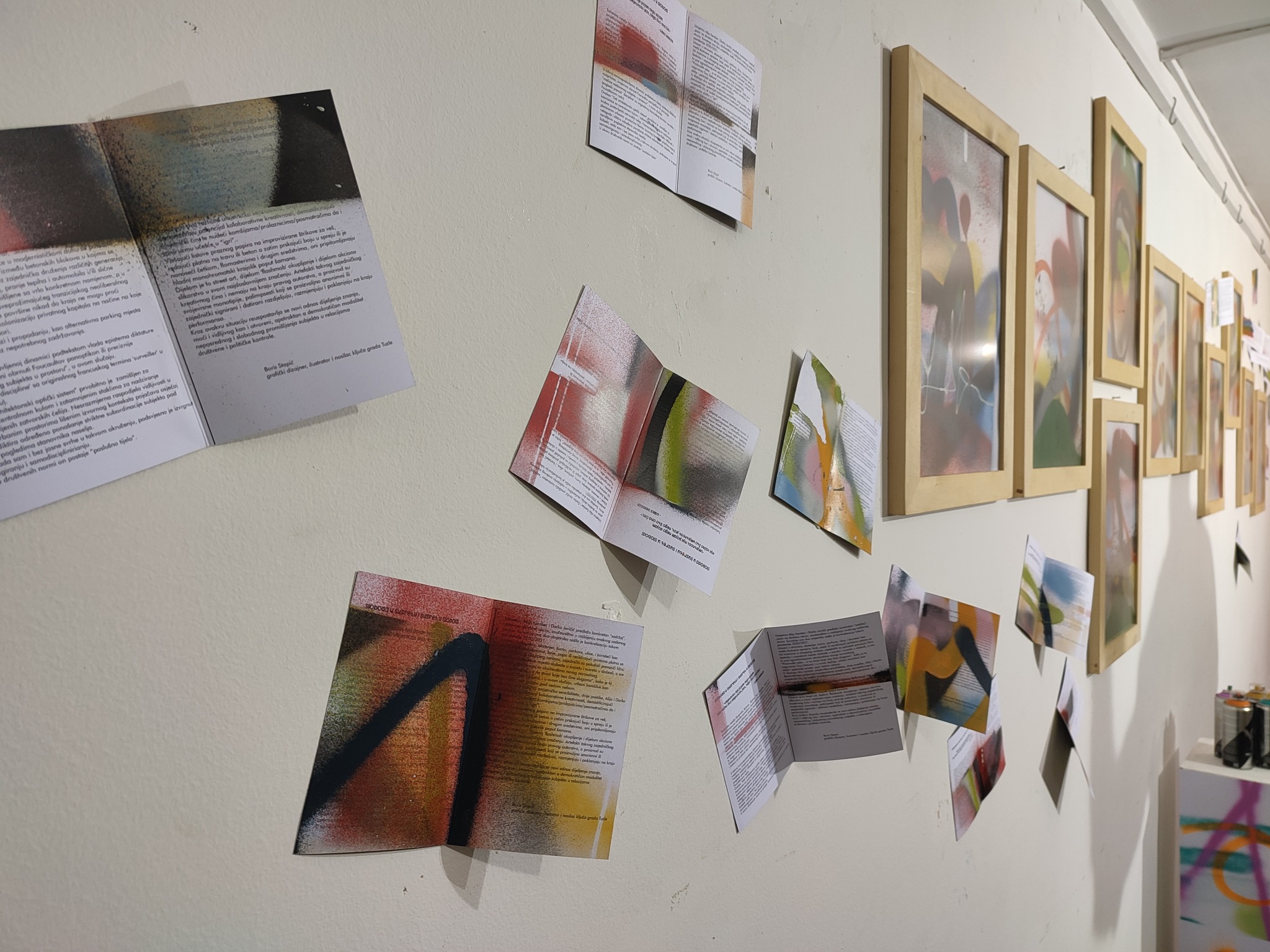 Na kraju je Atelje bio „išaran“ slikama koje su zajedno stvorili umjetnici i građani Tuzle. Nakon otvaranja, posjetitelji izložbe su imali priliku vidjeti i još nekoliko performansa poput sprejanja većih papira ili praznih okvira za slike. Napominjemo da su umjetnici i građani radili sprejevima isključivo na platnima i papirima, bez štete za Atelje.