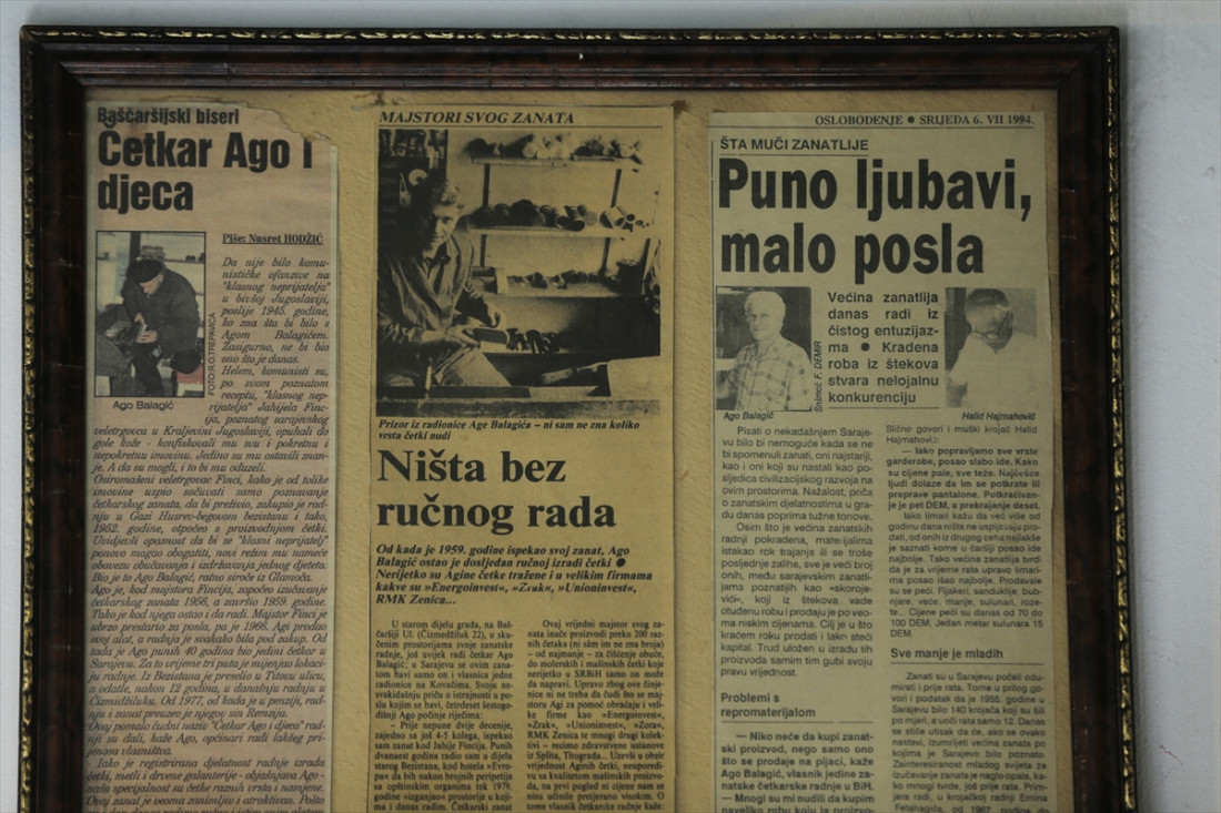 “Naslijedio sam zanat od svog rahmetli oca. Kao mali sam dolazio u radnju i svidio mi se ovaj zanat. I dan danas mi se sviđa i radim i pokušavam da ga održim. Moj otac je došao u Sarajevu kao ratno siroče iz Glamoča i prijavio se kod Jahila Fincija za izučavanje četkarskog zanata od kalfe, šegrta do majstora. Završio je kod njega tu obuku od 1954. do 1958. godine. Kada se vratio iz vojske, preuzeo je i radnju i zanat od Fincija koji je otišao u penziju”, kazao je Balagić.