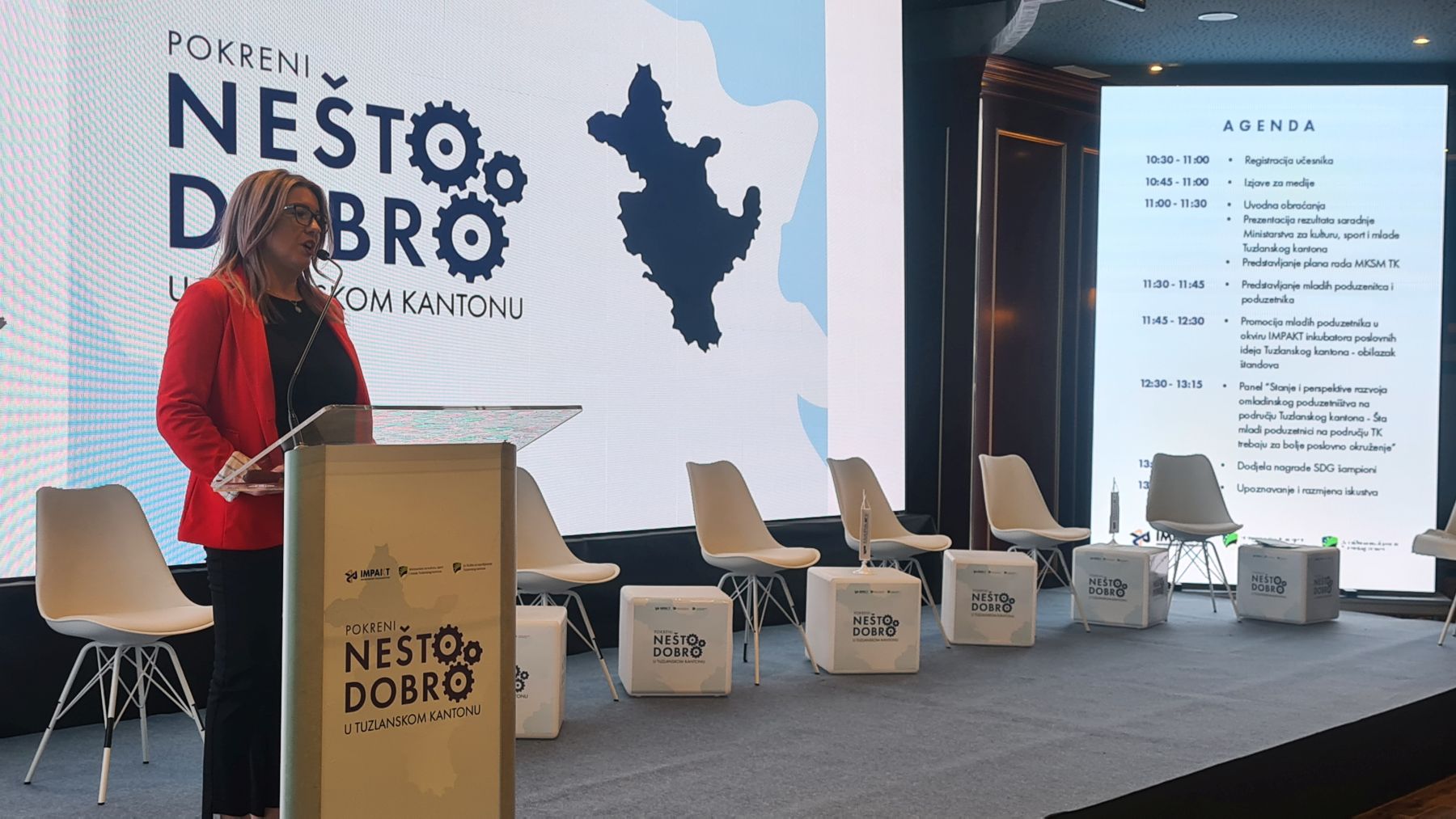 U protekle 2 godine je kroz ovaj program podršku je primilo oko 50 mladih poduzetnika koji su i prezentirani u sajamskom dijelu današnjeg događaja. Također, danas su promovisani i mladi poduzetnici u okviru IMPAKT inkubatora poslovnih ideja Tuzlanskog kantona, te je upriličen panel na temu „Stanje i perspektive razvoja omladinskog poduzetništva na području Tuzlanskog kantona – Šta mladi poduzetnici na području TK trebaju za bolje poslovno okruženje”.
