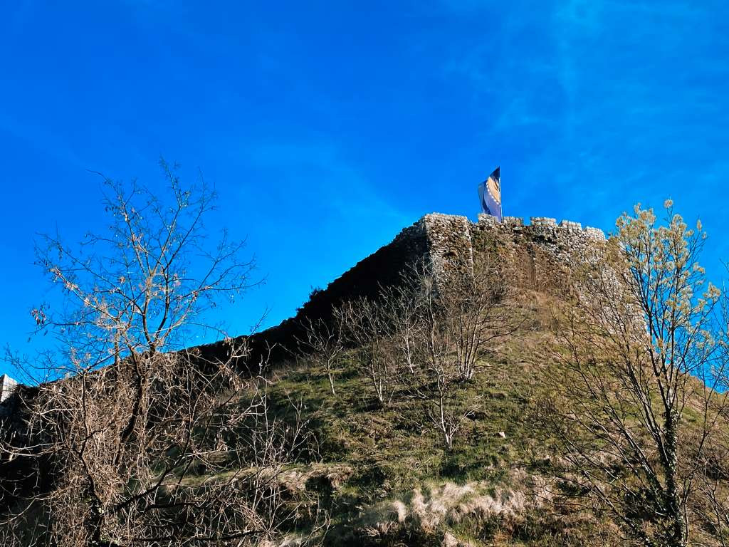 Ulaz u tvrđavu je “preko puta” džamije, do platoa se dolazi prvo stazom, a onda stepenicama, a na vrhu tvrđave vijore se zastave.