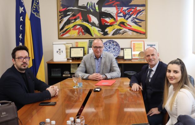U Gradskoj upravi Tuzla, gradonačelnik Lugavić sastao se sa menadžmentom visokoškolske ustanove FINra, prof.dr.sc. Ismetom Kalićem, direktorom, doc.dr.sc. Edinom Glogićem, zamjenikom direktora i Nerminom Kalić, rukovoditeljicom službe za finansije i računovodstvo.