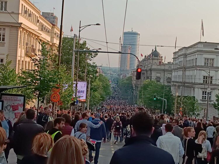 Kako prenosi N1 Srbija, protestna šetnja je krenula, a organizatori su pozvali na blokadu Gazele i Brankovog mosta. Poručili su da su spremni da “blokiraju Srbiju”. Kako javljaju reporteri N1 sa terena, prema njihovoj procjeni je ispred Skupštine bilo više ljudi nego na prethodnim protestima. Ljudi su bili raspoređeni od Crkve Svetog Marka, pa sve do Terazija.