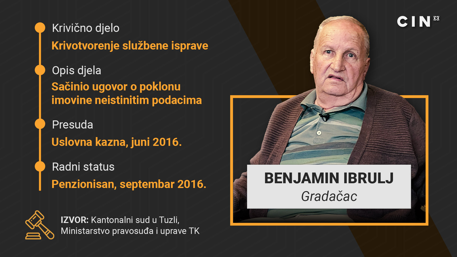 On je tri mjeseca nakon presude otišao u mirovinu, a iz Ministarstva pravosuđa Tuzlanskog kantona priznaju da su za ovaj slučaj prvi put čuli od novinara CIN-a.