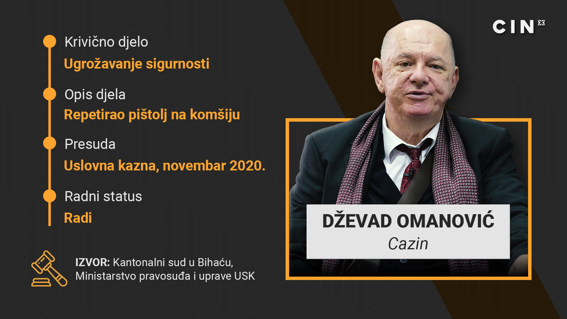 U šesnaest godina notarske karijere Dževada Omanovića iz Cazina stala su tri suđenja i nekoliko disciplinskih postupaka, ali mu ništa od toga nije štetilo karijeri – čak ni to što je osuđen jer je komšiji prijetio pištoljem.