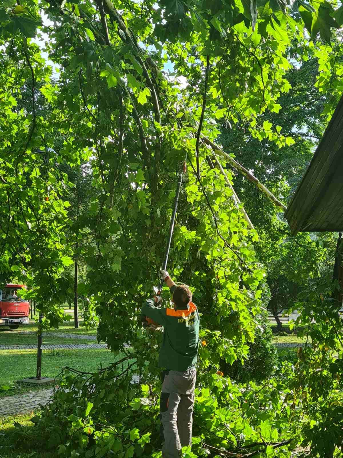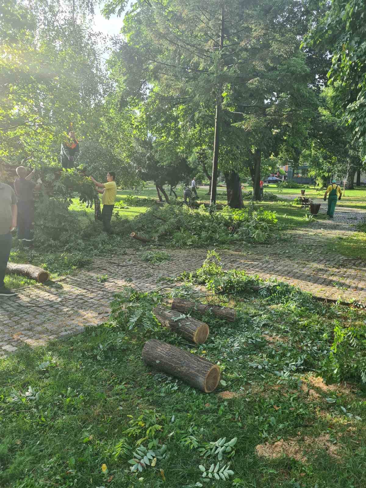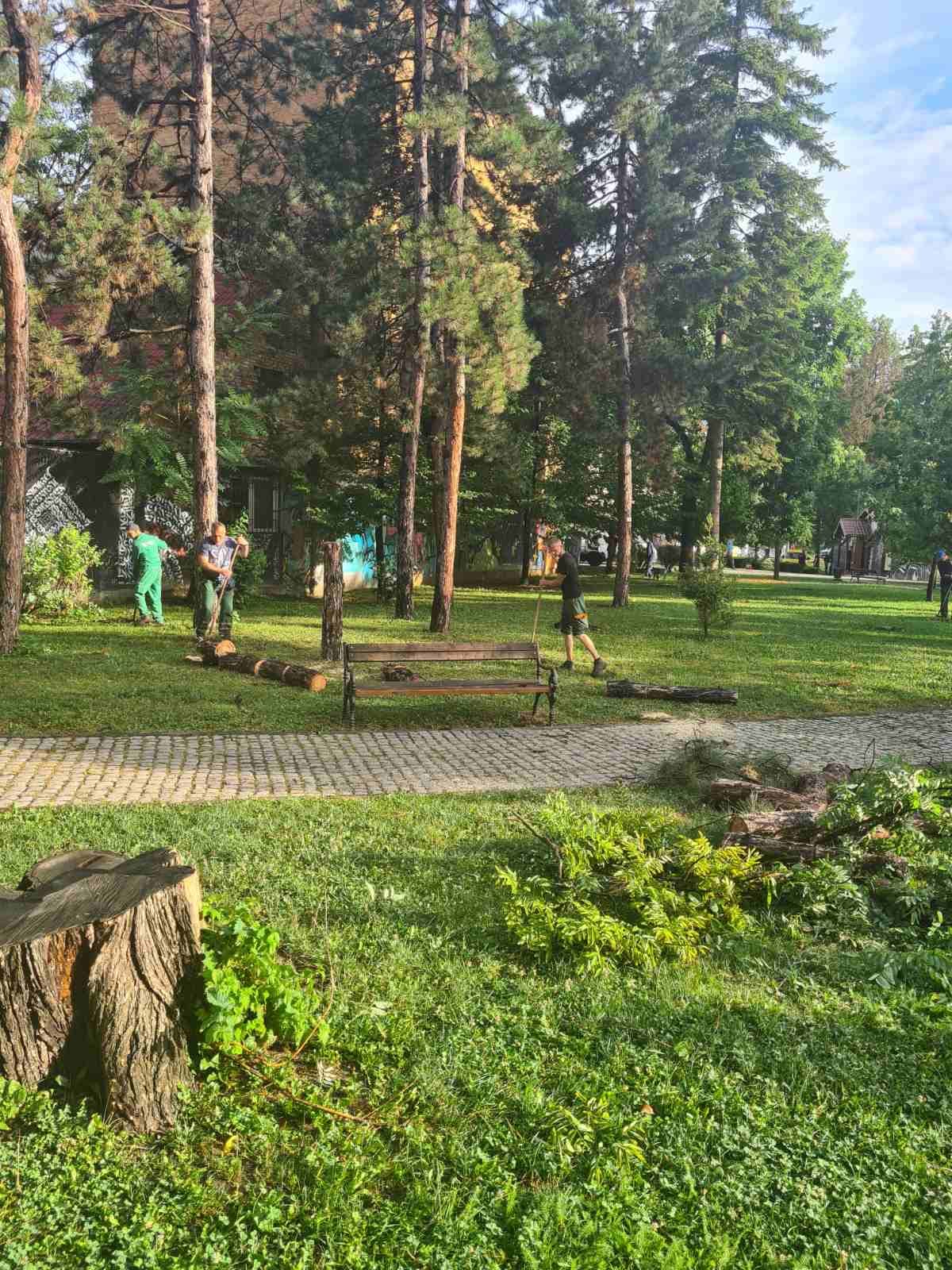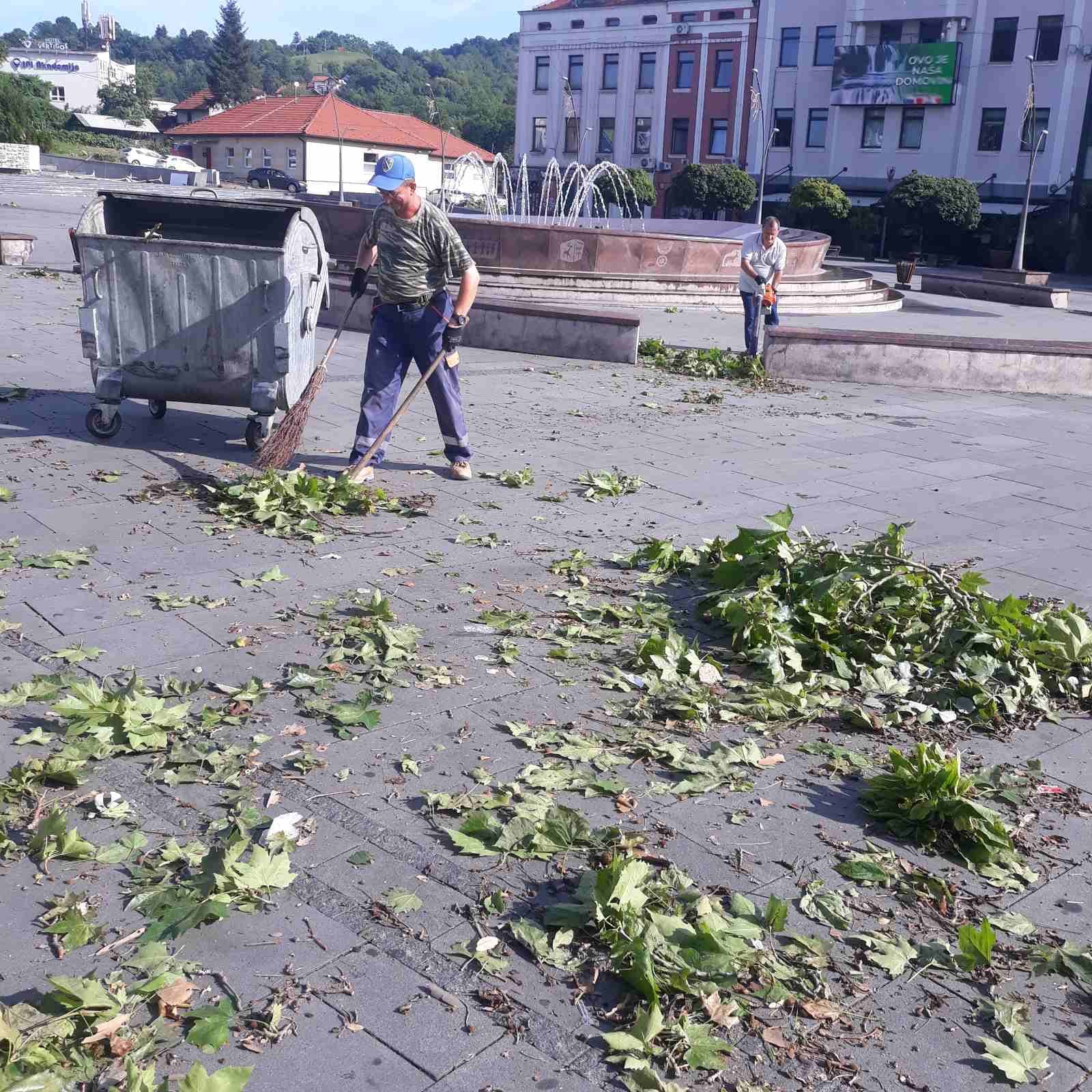 Od ranih jutarnjih sati uposlenici Komunalca uklanjaju ostatke drveća od olujnog nevremena, čiste i peru grad.