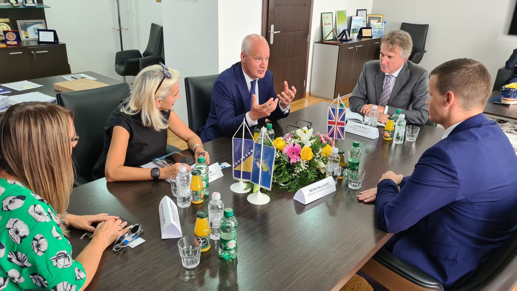 Premijer Tuzlanskog kantona Irfan Halilagić u četvrtak je primio u posjetu delegaciju Ambasade Velike Britanije u Bosni i Hercegovini. Na radnom sastanku sa generalnim direktorom za Evropu pri Ministarstvu vanjskih poslova Velike Britanije Peterom Vilsonom (Peter Wilson) i ambasadorom Velike Britanije u Bosni i Hercegovini Nj. E. Džulijanom Rajlijem (Julian Reilly), te njihovim saradnicima, premijer je, uz riječi dobrodošlice, prezentirao stanje u Tuzlanskom kantonu, princip rada Vlade Tuzlanskog kantona, ukazao na najznačajnije projekte koji su realizirani u proteklom periodu, kao i projekte koji su u fazi realizacije ili u planu za budući kratkoročni period.