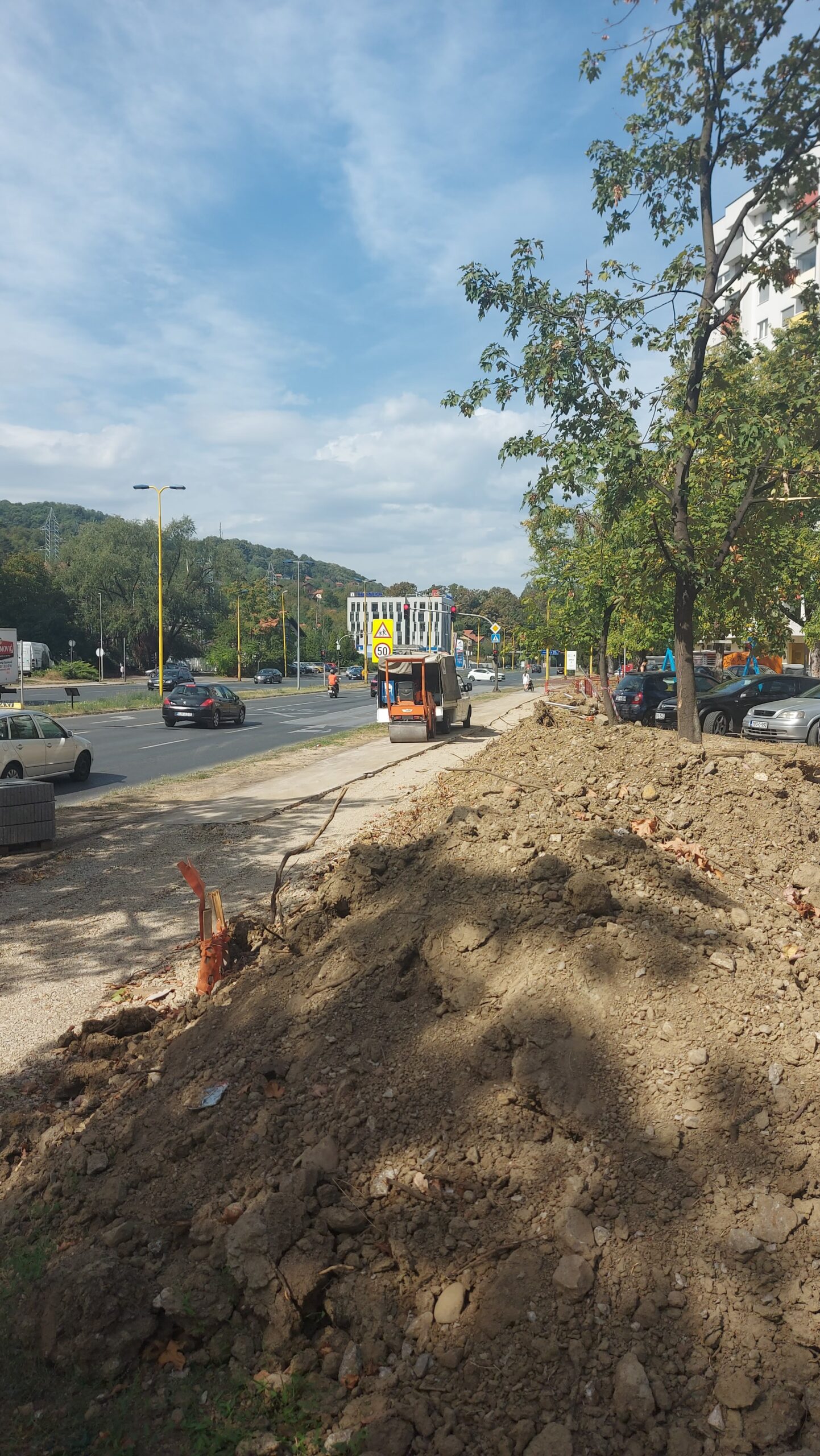 Nakon što je urađeno rušenje postojećeg asfaltnog zastoja na trotoaru uz južnu magistralu, uklonjeni su betonski ivičnjaci u dužini od 500 metara. Zatim su izvedeni radovi na podizanju poklopnih ploča iznad vrelovoda kako bi se omogućio pristup i sanacija ove važne infrastrukture.