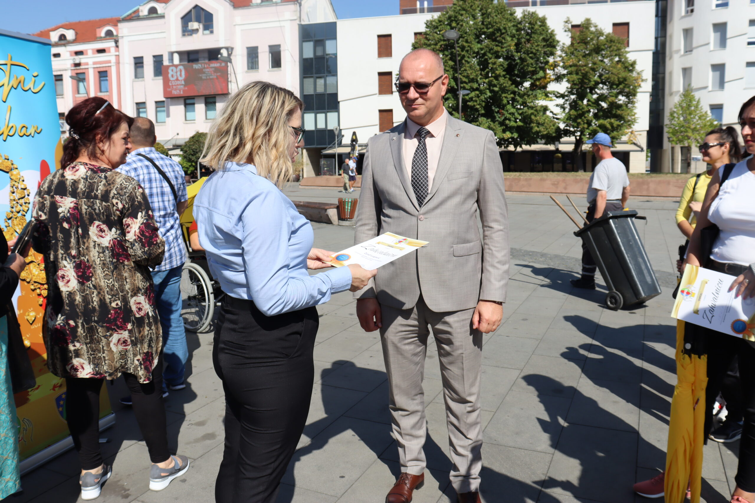 Foto: Na Trgu slobode u Tuzli oblikovana “zlatna vrpca”, simbol djece oboljele od raka