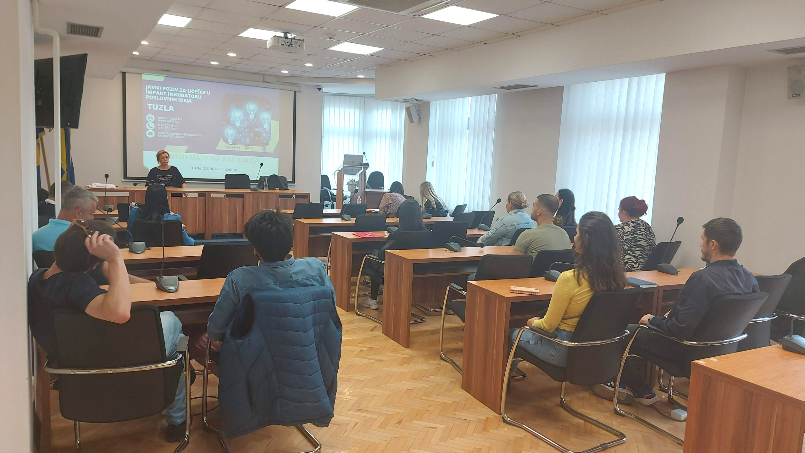 Na Info danu koji je održan u Sali za sjednice Gradskog vijeća Tuzle, potencijalni aplikanti dobili su informacije o programu podrške poduzetništvu kroz IMPAKT inkubator poslovnih ideja, odnosno, o uslovima, načinu prijavljivanja i ostalim pitanjima bitnim za učešće u Javnom pozivu.