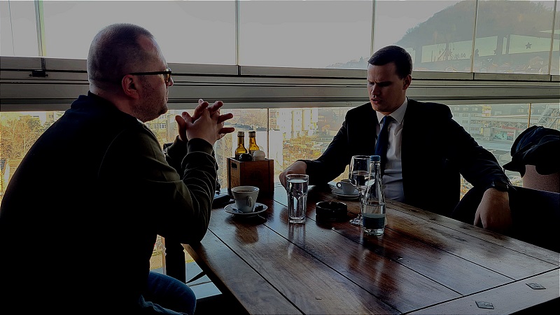 Nervira me što je fit, mlad i ispadne lijepo na svakoj fotki. Sredio se da ja ispadnem još lošije! Vrline mu ja kao ‘zgodno popunjeni’ novinar-zajebant nisam uspio naći jer ih nisam ni tražio. Naš susret i razgovor smo započeli u devastiranoj i ruševnoj zgradi SodaSo u Tuzli (zgradi Vlade TK), spaljenoj u demonstracijama 2014. godine, da bi smo prošetali i nastavili ga uz kafu.