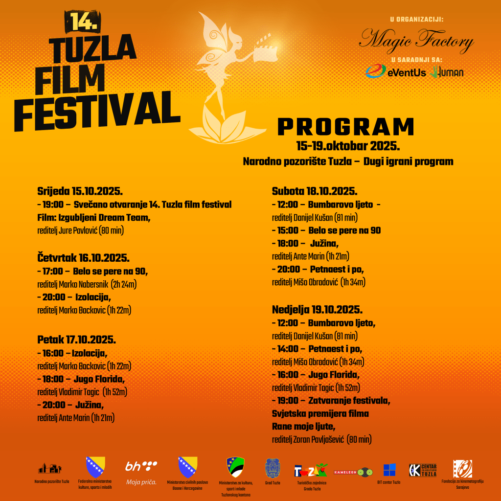 Tuzla će od 15. do 19. oktobra biti domaćin 14. izdanja Tuzla Film Festivala, jednog od najznačajnijih filmskih događaja u regiji, koji već godinama okuplja filmske umjetnike i zvijezde sa južnoslavenskog prostora.