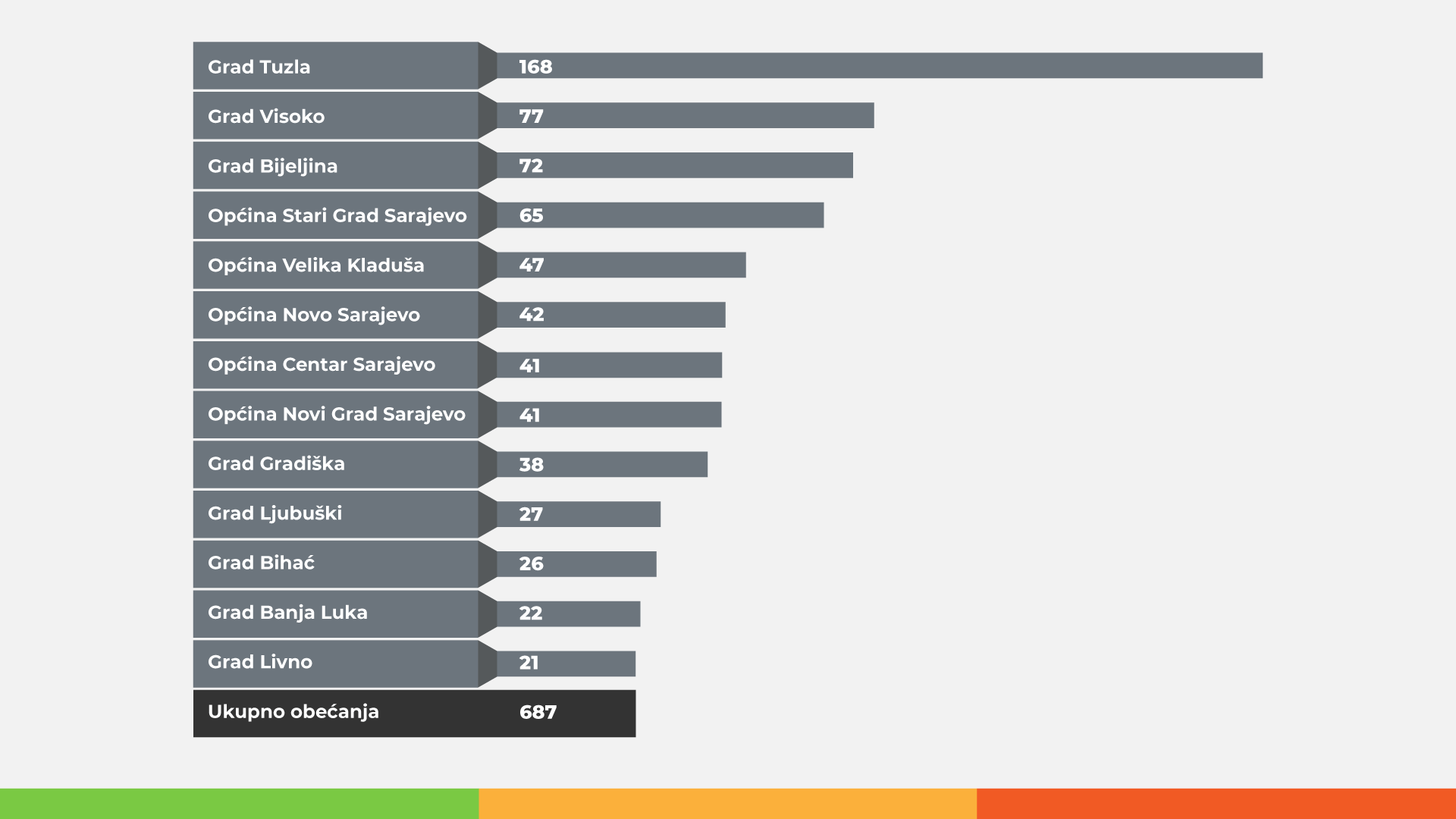 Rezultate monitoringa po pojedinačnim obećanjima za sve općine i gradove možete pogledati na LINKU.