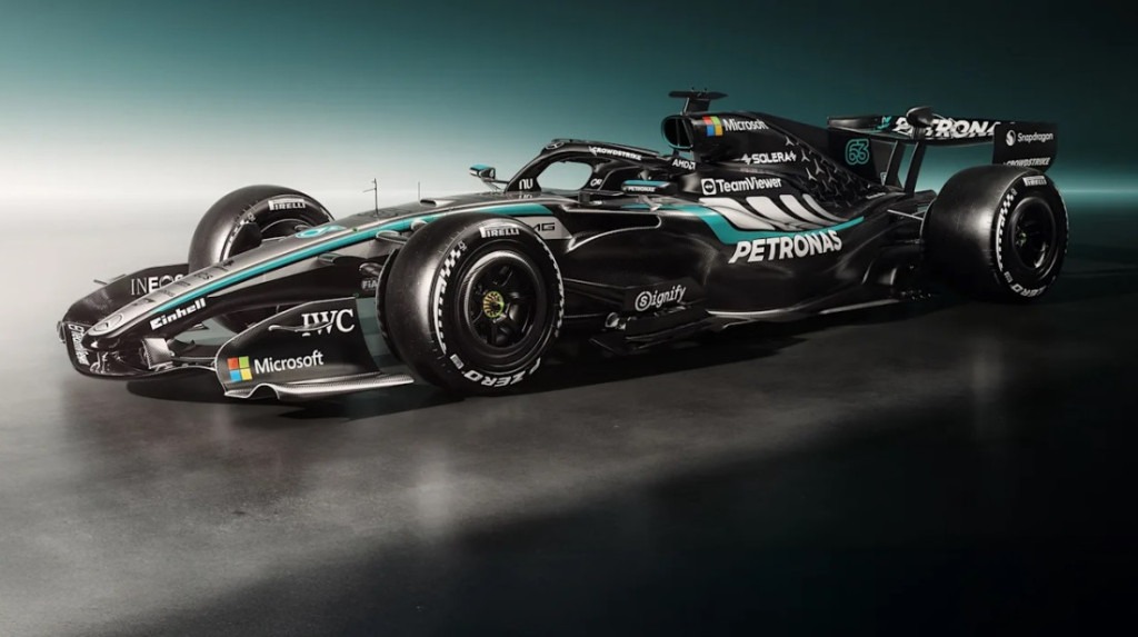 Mercedes se uglavnom držao srebrno-crnog izgleda koji je bio na njihovom modelu W16 iz 2025. godine. Zelena linija koja se proteže preko bolida odaje počast sponzoru Petronasu, a dodate su i crne pruge na gornji bočni dio.