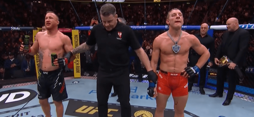 Justin Gaethje (37) postao je novi privremeni prvak UFC-ove lake kategorije nakon što je u Las Vegasu jednoglasnom odlukom sudaca svladao Paddyja Pimbletta (31). U uzbudljivoj borbi na pet rundi, Pimblett je doživio svoj prvi poraz u oktogonu, piše Bloody Elbow.