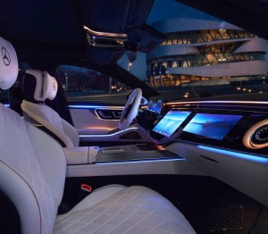 Stražnji dio vozila pretvoren je u prvoklasni poslovni prostor s First-Class stražnjim odjeljkom, dva 13,1-inčna zaslona, dva odvojiva MBUX daljinska upravljača i integriranim video konferencijama, transformirajući kabinu u potpuno povezano radno mjesto ili spokojan osobni kutak.