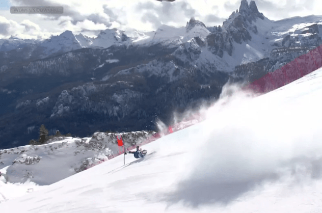 Vonn je na stazu izašla uprkos ozbiljnoj povredi koljena, budući da je nastupala s pokidanim križnim ligamentima, ali je njen pokušaj vrlo brzo završen na dramatičan način. Pad je bio izuzetno težak, a scene koje su uslijedile potresle su i publiku i gledaoce kraj malih ekrana.