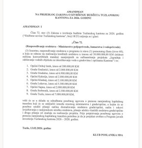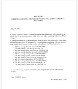 O amandmanima će se glasati u srijedu, 18.02.2026.godine na sjednici Skupštine Tuzlanskog kantona.