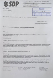 Klub vijećnika Socijaldemokratske partije u Gradskom vijeću Tuzla uputio je tri amandmana na Prijedlog Odluke o komunalnim taksama, koja će se naći na dnevnom redu sjednice Gradskog vijeća zakazane za 23. februara.