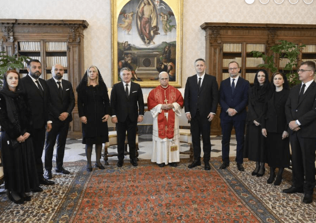 Članovi Predsjedništva BiH se sastali sa Svetim ocem papom Lavom XIV u Vatikanu. Tokom sastanka potvrđeni su izuzetno prijateljski odnosi Bosne i Hercegovine i Svete stolice. Članovi Predsjedništva BiH prenijeli su pozdrave uime BiH te izrazili zahvalnost na kontinuiranoj podršci koju Sveta stolica pruža našoj zemlji, uz nadu da će se ta podrška nastaviti i u budućnosti.