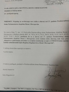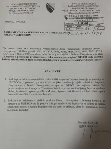 „Mi imamo sad zaključak koji traži od Ministarstva civilnih poslova da pokrene proceduru u saradnji s državnom komisijom za saradnju sa UNESCO-om, što podrazumijeva uvrštavanje u listu, i onda idemo dalje korak po korak. Oni koji se zaklinju da su za ulazak u Evropu treba da znaju da se radi ne samo o kulturnom naslijeđu BiH nego i Evrope, o evropskom kulturnom naslijeđu“, poručio je zastupnik SDP-a u Zastupničkom domu PSBiH, Jasmin Imamović.