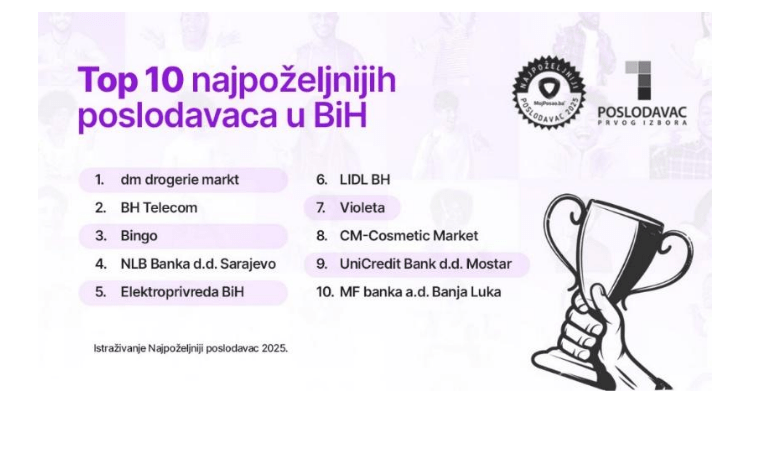 Ovo su najpoželjniji poslodavci u BiH za 2025. godinu