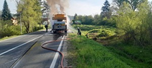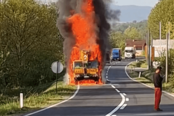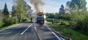 Na magistralnom putu Tuzla – Srebrenik, u mjestu Ljepunice, u ponedjeljak u 7:15 sati zapalio se kamion-dizalica.